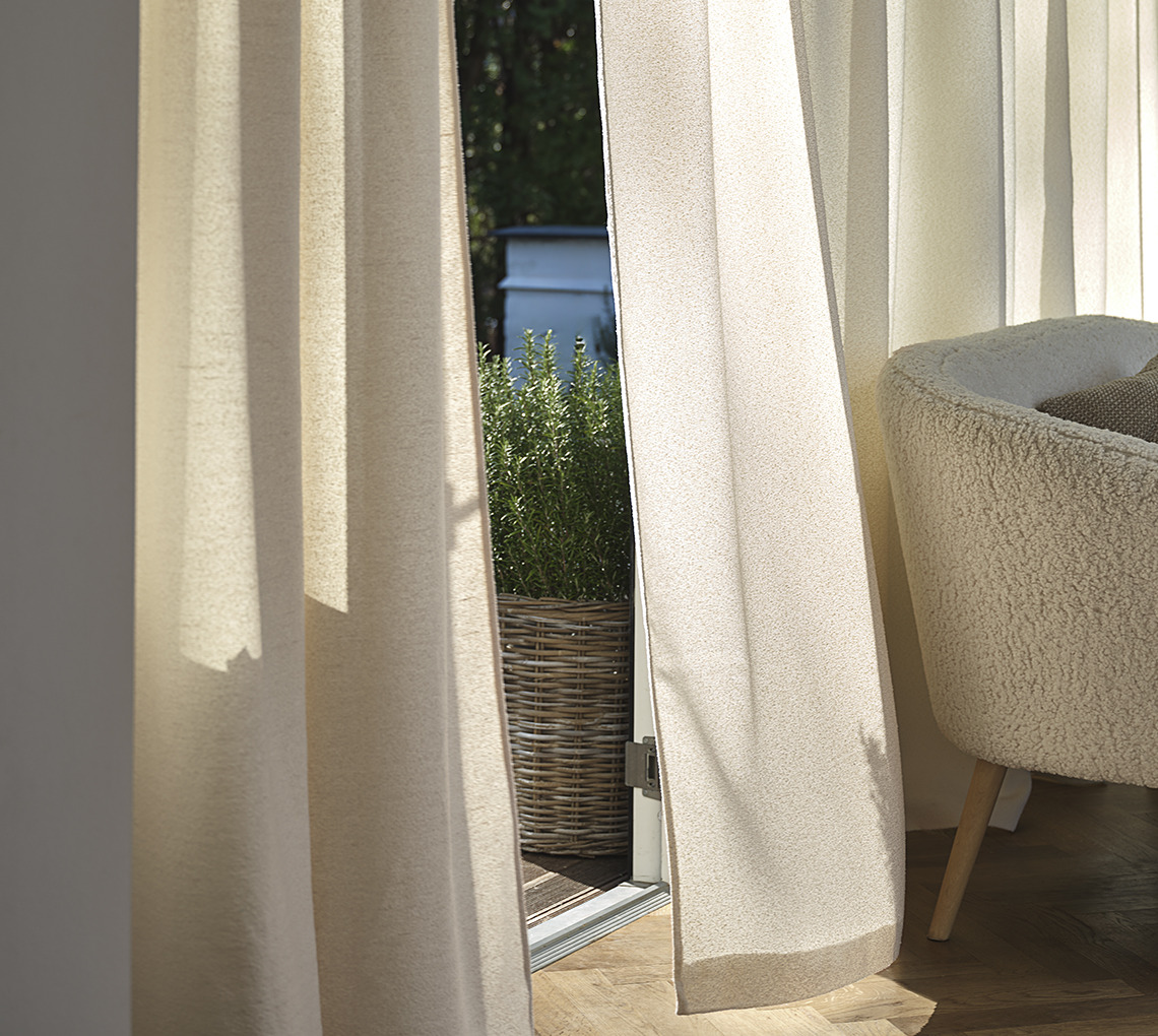"Za slunečných dnů chceme omezit světlo svítící do našich pokojů a v chladnějších dnech chceme vytvořit útulný a chráněný pocit. Naše těžké závěsy GOODO a ERKEN jsou ideální pro obě situace.