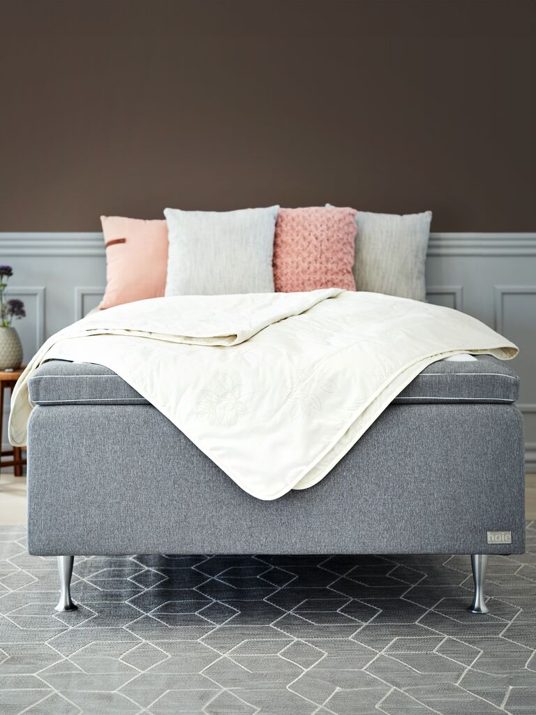 Přikrývka v rozměru 135x220 cm s náplní ze 60 % lnu a 40 % hedvábí, 650 g. Jemný potah ze 100% bavlněného batistu. Praní na 40 °C. Včetně tašky.