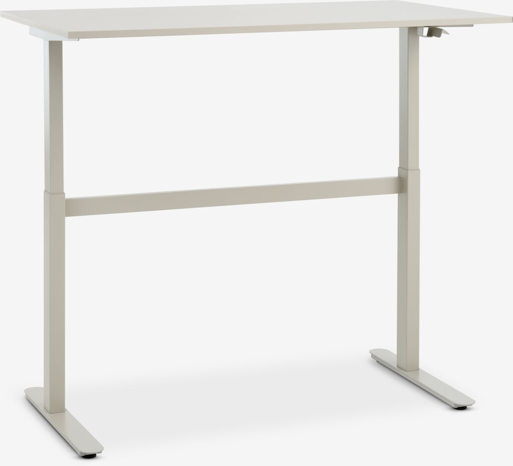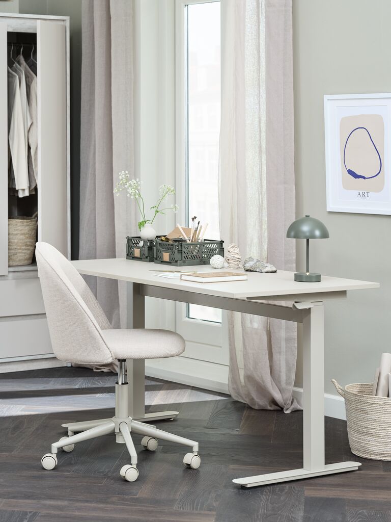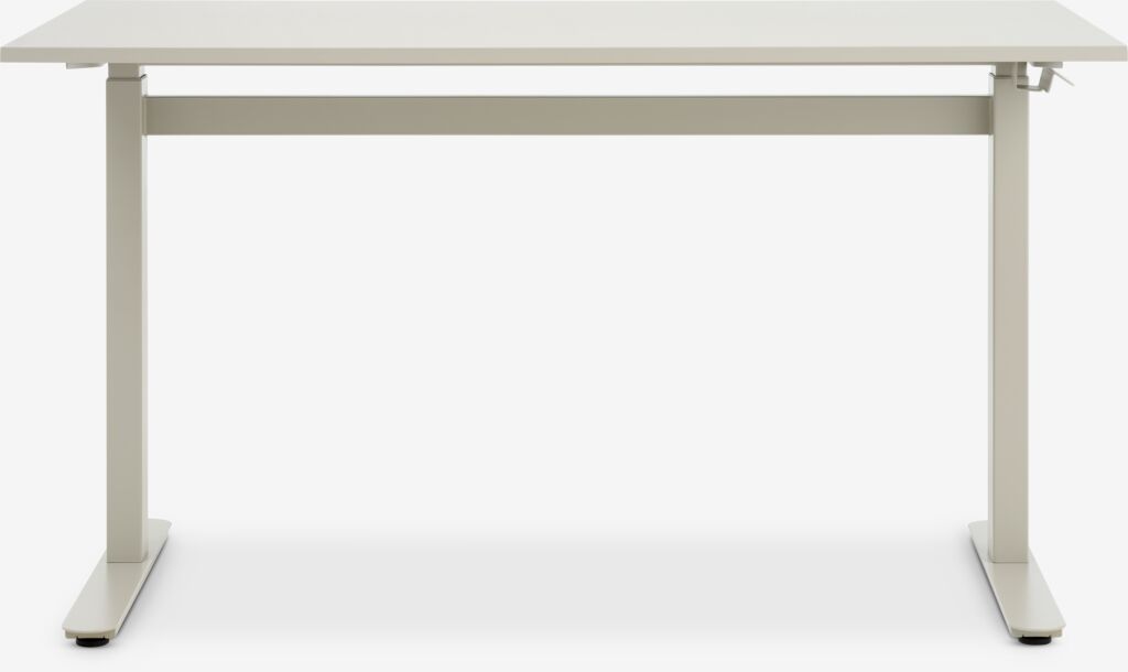 Psací stůl s nastavitelnou výškou LUNDTOFT poskytuje flexibilní pracovní prostor. Výšku stolu snadno nastavíte podle požadované pozice a ovládá se tichým plynovým pístem, který není třeba zapojovat do sítě - díky tomu můžete stůl umístit kamkoliv. Béžový psací stůl má minimalistický design a desku s čistými rovnými liniemi. Š70×D130×V71-117 cm