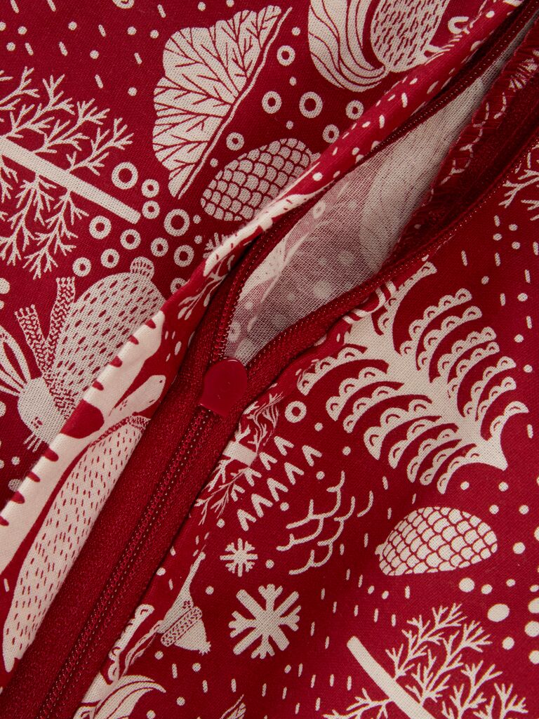 Povlečení ze 100% bavlny se svátečním vánočním vzorem lesních motivů na červeném podkladu. Tento vzor vnese do vaší ložnice hřejivou vánoční atmosféru. Sada obsahuje jeden povlak na přikrývku a jeden povlak na polštář, obojí s praktickým zapínáním na zip. 140x200 cm