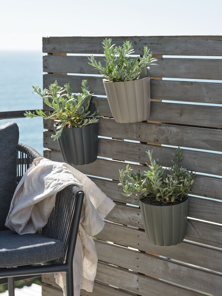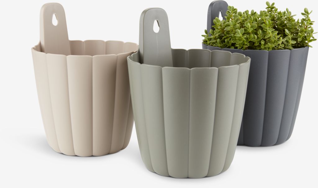 Zahradní květináč z plastu (100% recyklovaný), k dispozici v různých barvách. Tento mrazuvzdorný zahradní květináč lze zavěsit jako dekoraci na zeď a ušetřit tak místo na podlaze. Drenážní otvor zajišťuje, že přebytečná voda může odtékat. Ø16×V21 cm