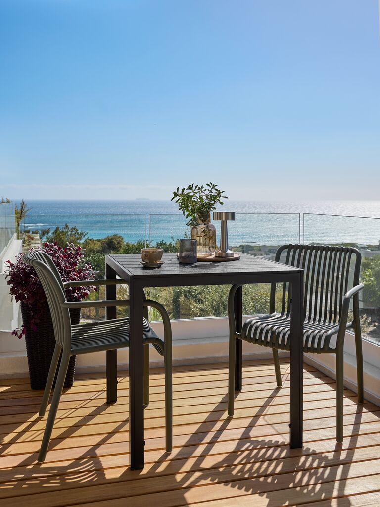 Černý zahradní stůl s deskou z umělého dřeva. Rám a nohy z práškově lakovaného hliníku. Umělé dřevo má vzhled a texturu přírodního dřeva, ale nevyžaduje údržbu. Hliník je lehký a robustní materiál odolný vůči korozi. Š70×D70×V74 cm